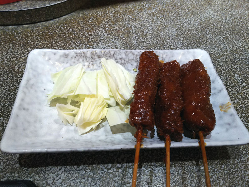 お蕎麦屋さんですが、おつまみも結構おいてあります。まずは、名古屋といえばという八丁味噌だれを使った味噌串かつ。これは、ビールに合いますね。串かつなので食べやすい。