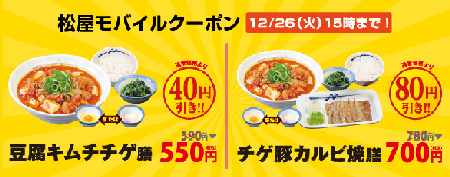 土曜日(12/23)のお昼ごはんは、松屋にしました。冬メニューの豆腐チゲ鍋のセットで、チゲ鍋カルビ焼き膳にしました。