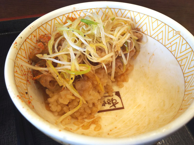 日曜日(12/29)のお昼は、すき家で期間限定メニューの白髪ねぎ牛丼デビルおんたまMixを食べてみました。 -