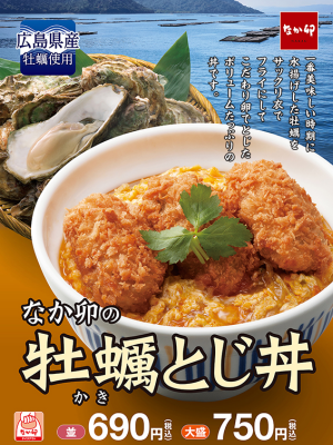 1/4のお昼ご飯は、なか卯で季節限定メニューの牡蠣とじ丼を食べてみました。