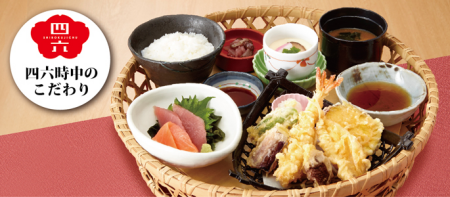 4/16のお昼ご飯はイオンタウン東習志野の和ダイニング四六時中で海老天丼を食べてみました。