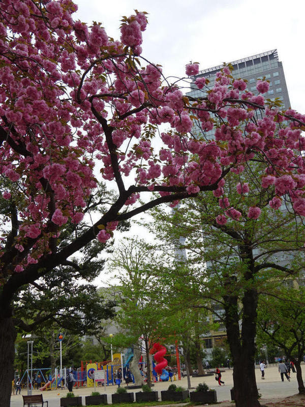 八重桜も飛ばされる 強風の錦糸公園でお花見2018