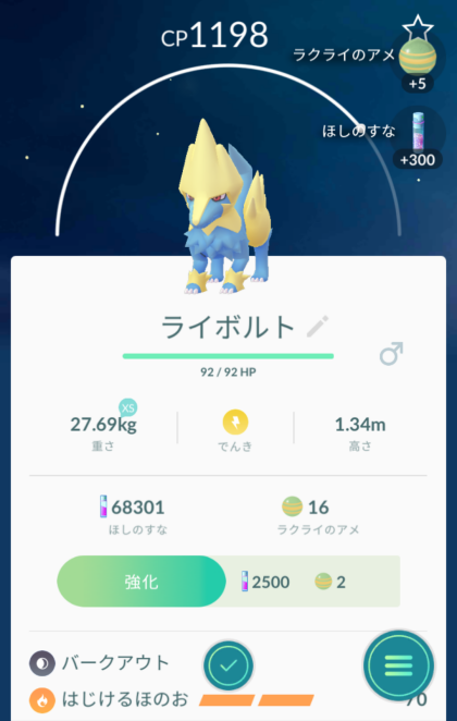これは、進化系ポケモンでしたが、野生のものをゲットしたライボルト。