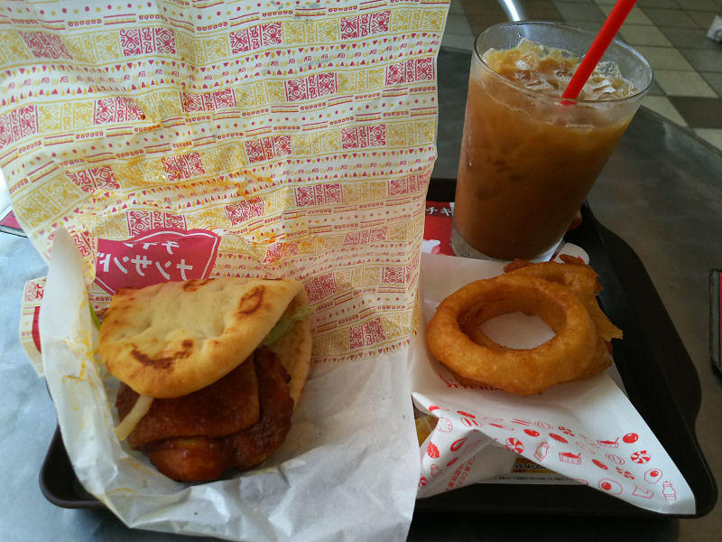 タンドリーチキンサンドとオニオンリングで結構お腹がいっぱいになりました。このスパイシーな味付けは暑い夏には丁度いい。数量限定なので、近い内に終了になってしまうかもしれませんが。