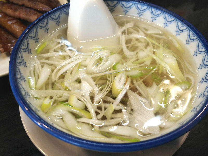 テールスープはネギたっぷり。テールも柔らかく煮込んであって、これだでも一品分はある感じです。