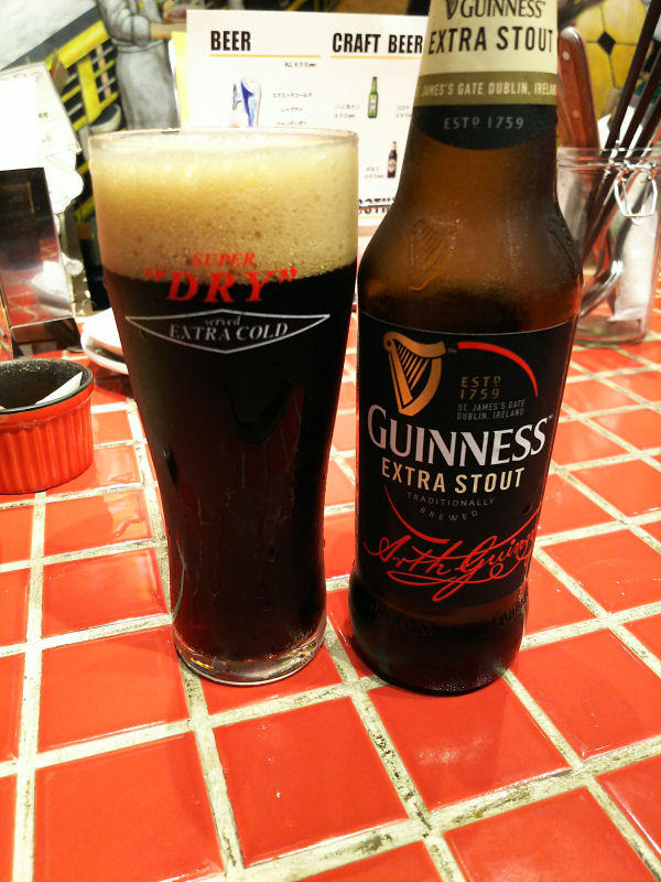 ギネスがあったんで注文してみたら、瓶で出てきた。ギネスが瓶で出るところは初めてだったので、ちょっとびっくり。グラスはスーパードライのままですが。
