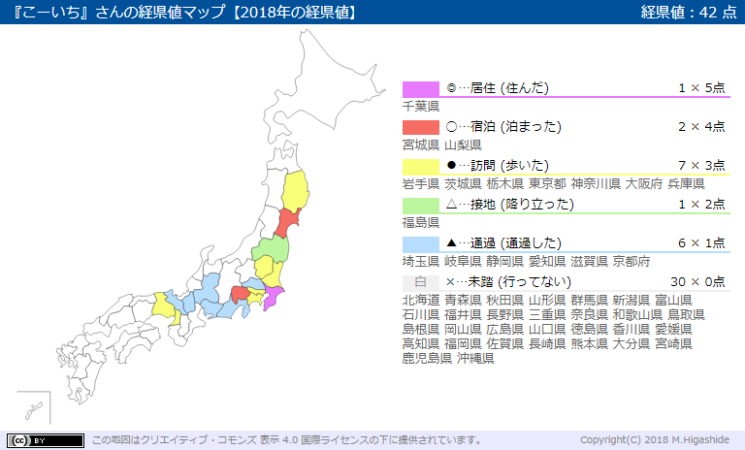 2018年の経県値 東日本を中心に兵庫県は初滞在
