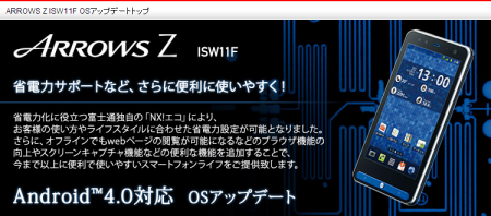 auのArrows Z ISW11FのAndroid4.0対応されたというアナウンスが12月に出ていたが、ようやくアップデートを完了した。 -