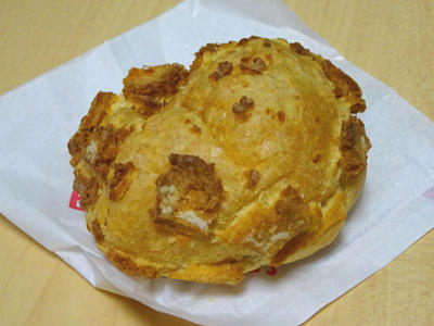 まずは、チーズケーキシューから。シューの外観のデコボコしているのは、タルト生地になっているそうです。ここがサクッとして、なかなかいい食感のアクセントになっています。見た目にもなんだか面白くていいですね。