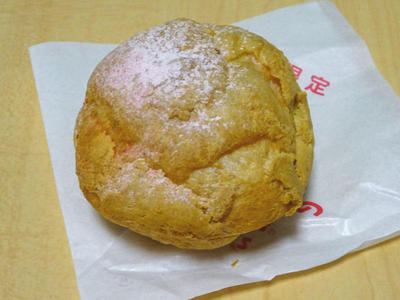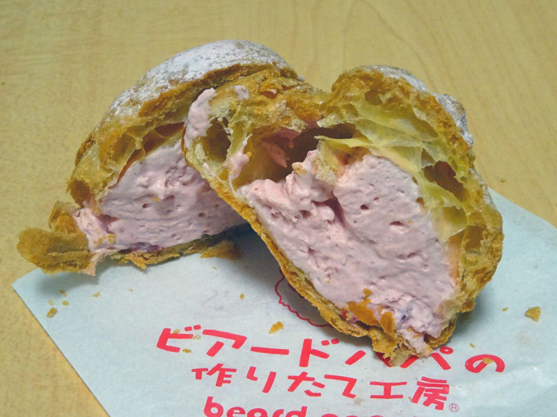 続いて、贅沢いちごシュー。いちごのようなピンク色の粉砂糖がかかってます。あとは、普通のシュー生地になっていますが、このくらいシンプルな方がいいですね。