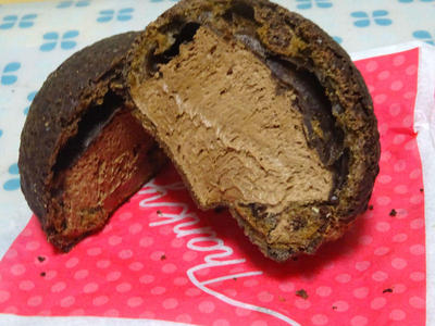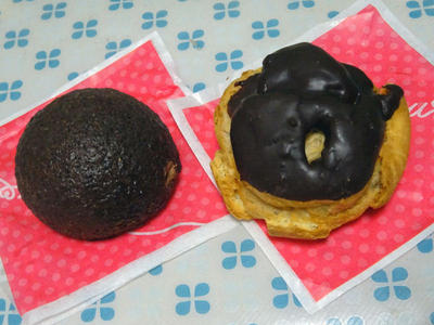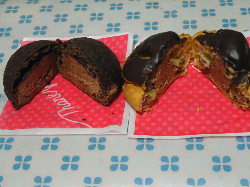 という事で、焼きチョコシューに、エクレアシューのチョコクリームを買ってきました。焼きチョコシュー、見た目にはかりんとうのような硬めの生地です。チョコがけした生地を2度焼きした生地なそうです。