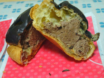 そして、エクレアシューもチョコクリームたっぷり。ちょこがけしたエクレアー風のシュー生地とチョコクリームの相性はいいですね。