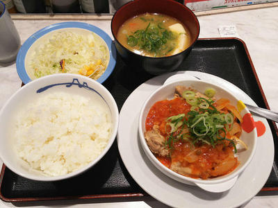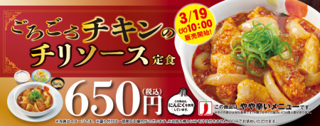松屋 期間限定 復刻のごろごろチキンのチリソース定食 ピリ辛濃厚ソースが美味い