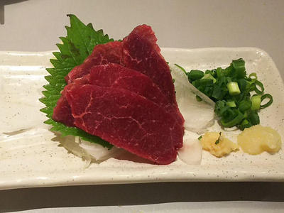 まず、最初は馬刺し。久しぶりに食べたけど、なかなか美味しい。個人的にはにんにくと一緒に食べたほうが美味しかったです。そして、玉ねぎと合わせても美味しい。