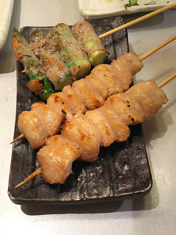 こっから先は串物がメインになります。豚焼のハツに、ベーコントマト串、アスパラ肉巻き串。温かい串もの美味しい。ミニトマト串は何気に美味しいのです。アスパラと肉はやっぱ合う。