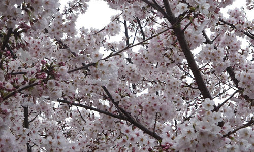 別な角度からみると、こんな感じです。満開の桜なのですが、日が出たり隠れたりでした。日が出てくるとかなり桜が映えてくるんですがね。