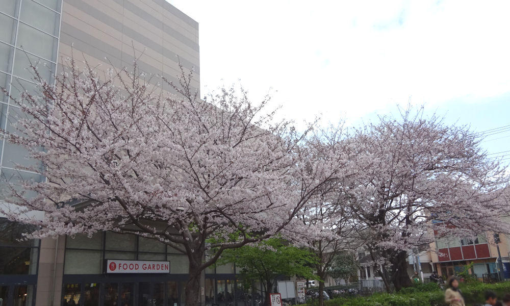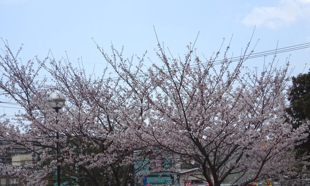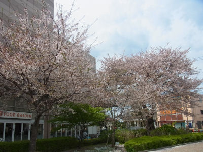 建物から反対側の道路沿いにある桜の木。こちらも、ほぼ満開でした。木によって、すこしばらつきがある感じですね。日当たりの関係なんでしょうか。