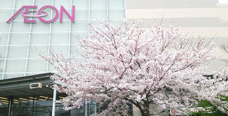 イオンモール津田沼前の桜の木。ほぼ、このときは満開でした。この桜の木結構大きくて見ごたえがあります。