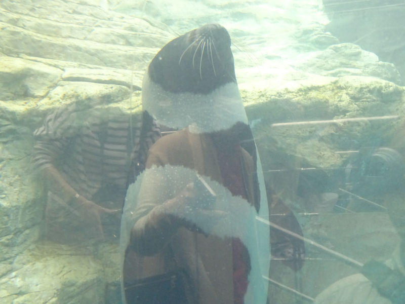 次はオットセイ。割と、人慣れしているのか頻繁にガラス面付近に泳いできてくれました。結構、泳ぎ回りますね。
