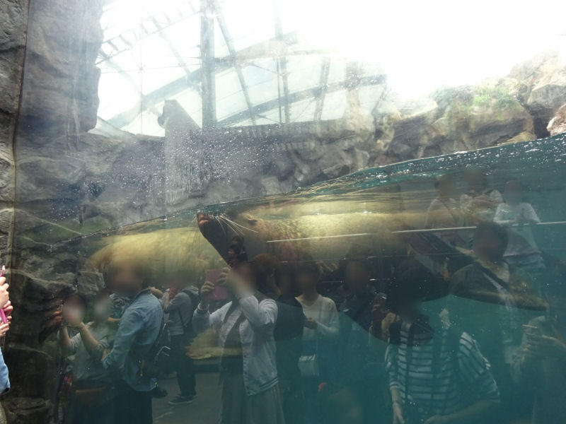 次のブースのトド。いや、水槽の中とは言えトドかなりでかくて驚きました。これが2匹泳いでいて、かなりのど迫力でした。