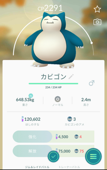 何気にカビゴンは初ゲットです。野生のカビゴンとか見かけたことがなかったしね。今更ながらゲットだけど嬉しい。