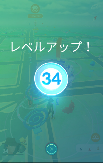 Pokémon GOは、レベル34となりました。レベル33から123日。約4ヶ月でのレベルアップです。