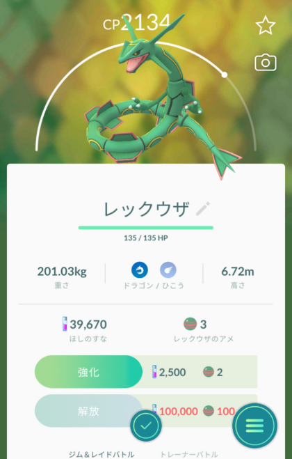 続いてはレックウザ。レイドバトルでなんとかゲット出来ました。