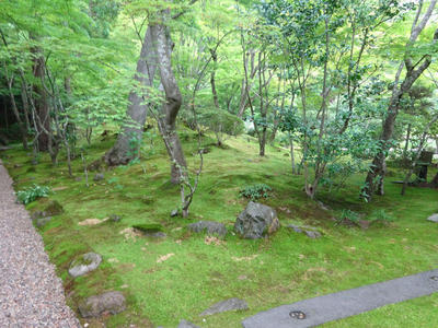さらに進むと、庭園が広がっています。苔の緑が非常に味わい深いものになっています。観光客は結構いたのですが、タイミング的に丁度人がいなくて静けさが漂う感じで良かったです。