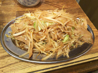 なんかつなぎで食べようとおもって、肉もやし炒めを注文したんですが、思いのほか量が多くてびっくりでした。たぶん、もやしだけでも相当な量がありそうです。まあ、もやしなんで食べるのは、なんとかなりましたが。肉も入っていて、つまみとしても結構いけます。