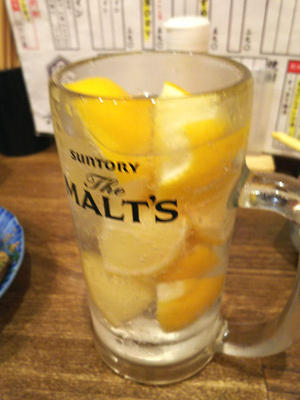 ここら辺でかち割りレモンサワーに。凍らせたレモンで割るサワーで、サワーだけおわかりできます。といいつつ、お腹が一杯になってきていたので、あまりここからは飲めなかったんですが。