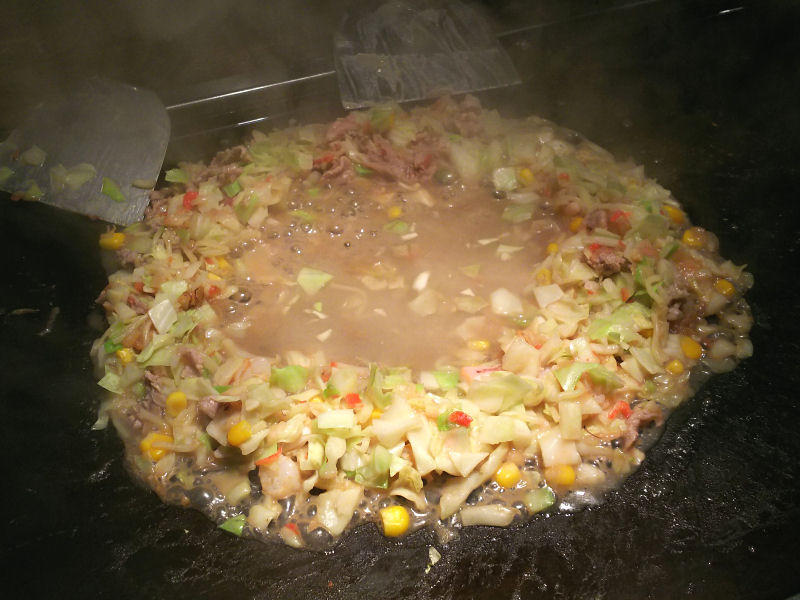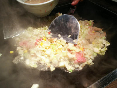 まずは、もんじゃから。ミックスもんじゃにしました。結構、いろんな種類の具が入っていて具だくさんです。