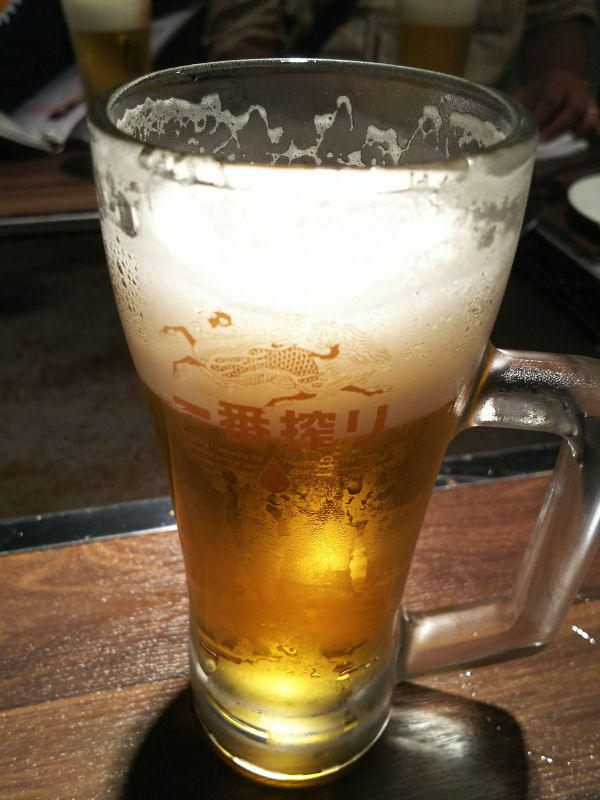 まずは、生ビールを一杯。この日も暑かったので、一発目のビールはうまいですなあ。