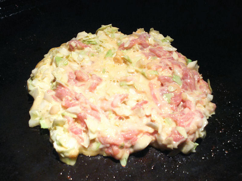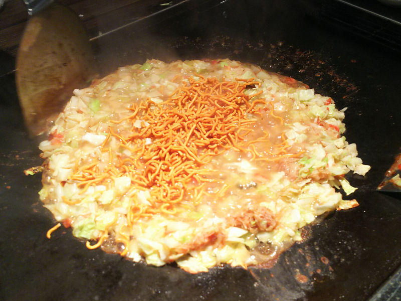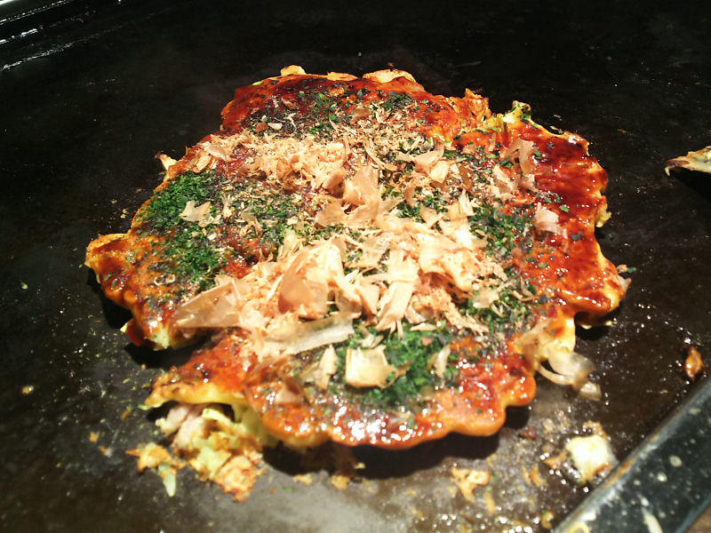 一応、お好み焼きも。豚玉にしました。もんじゃで鉄板が汚れたので、お店の人にきれいにしてもらってからのお好み焼きです。個人的にはお好み焼き好きなんですよね。