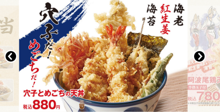 9/7のお昼ご飯は、久しぶりにてんやにしました。夏メニューの穴子とめごちの天丼を食べてみました。