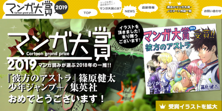 「彼方のアストラ」がマンガ大賞2019でで大賞を獲得しました。