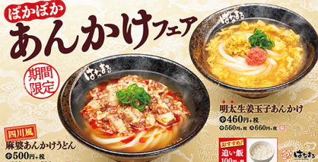 はなまるうどん あんかけフェア 生姜玉子あんかけうどんで温まる