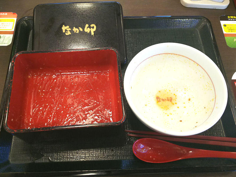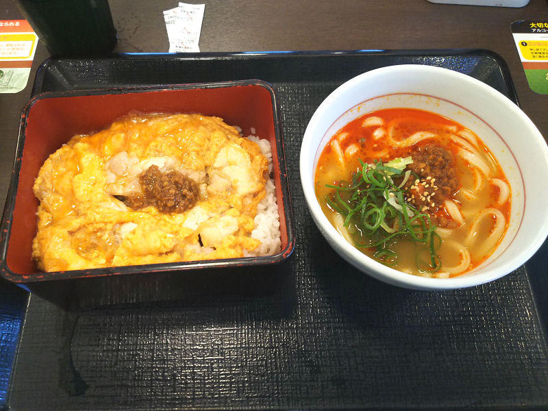土曜日(4/6)のお昼ご飯は、なか卯にしました。プレミアムカツカレーと坦々うどんを食べてみました。 -