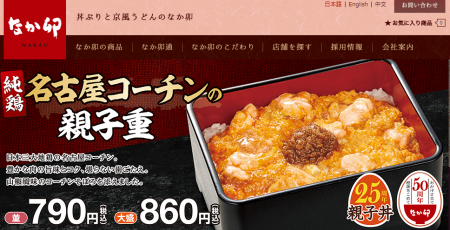 今回は、期間限定メニューの純鶏名古屋コーチンの親子重を食べてみる事にしてみました。なか卯の親子丼25周年のメニューのようです。