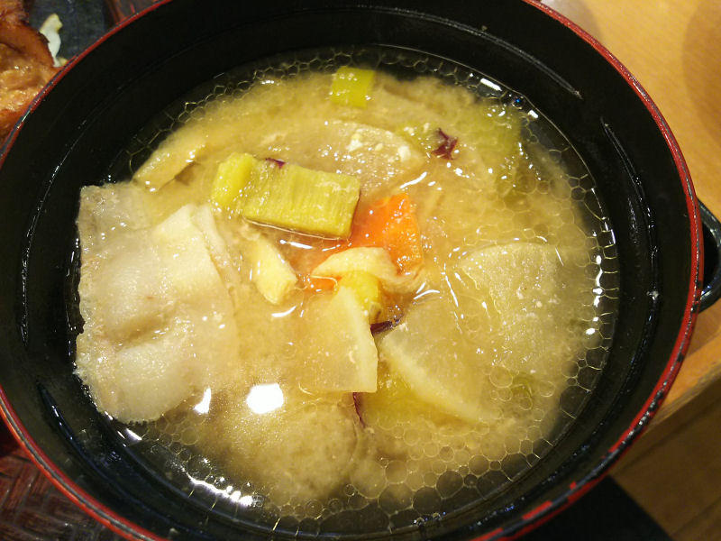 さつまいもの豚汁。大戸屋の豚汁はさつまいも入りでボリューム感があります。具沢山で美味しい。