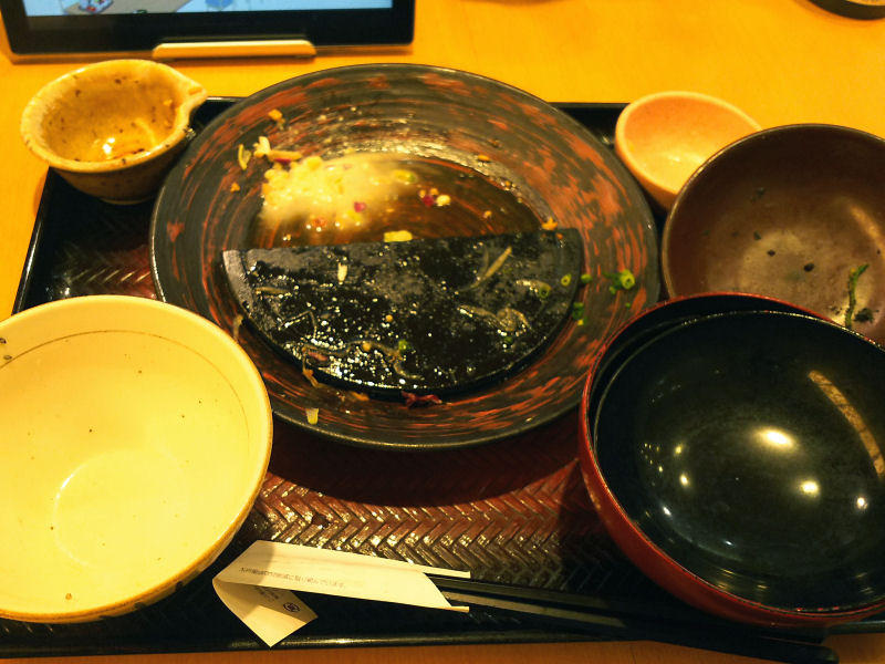 豚肉も鶏肉も味あえて、大満足でした。という事で完食です。久々の大戸屋美味しかった。ご飯ちょっと多めにしておいたので、肉の量とバランスも良かったです。