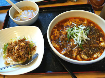 選択したのは、陳麻婆麺とミニ台湾肉丼のセットメニューです。普通に、辛目の麻婆豆腐ラーメンという感じなんですけどね。