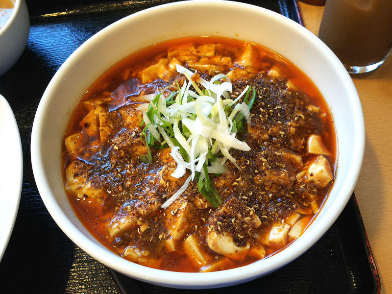 という事で、陳麻婆麺です。たしかにめにゅーにはしびれるという注意書きはあったのですが。最初は、普通に四川風麻婆に近い感じで食べていたのですが、この大量にのった花椒がひたすらにヤバい。