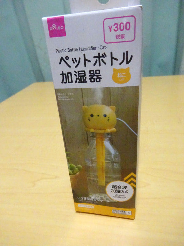 ダイソーの便利グッズシリーズはいろいろあるんですが、前からあったかもしれないけど、使えるのかなと思って買ってみたのが、ペットボトルで使用する加湿器です。