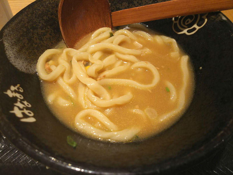 スープは確かにカレー風味で牛乳が入っているのでまろやか、味噌の感じはあまりないですが、カレーと馴染んでしまってる感じなんでしょうね。うどん中にしたら、思ったよりも多い感じで、さすがにお腹いっぱいになりました。