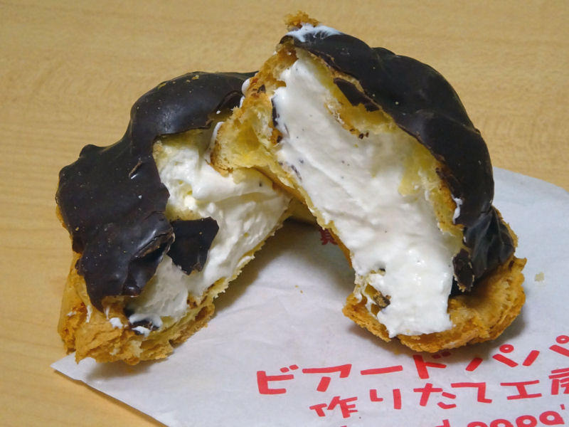 芳醇生クリームというだけあって、濃厚な生クリームでこれは、さすがに美味しい。エクレアシューのチョコともすごく合います。生クリームシューも定番になればいいのになぁ。