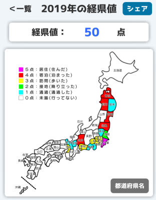 2019年の経県値をやってみました。