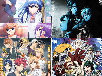 開始順で、「ぼくたちは勉強ができない!」「ノー・ガンズ・ライフ」「食戟のソーマ 神ノ皿」「僕のヒーローアカデミア」になります。