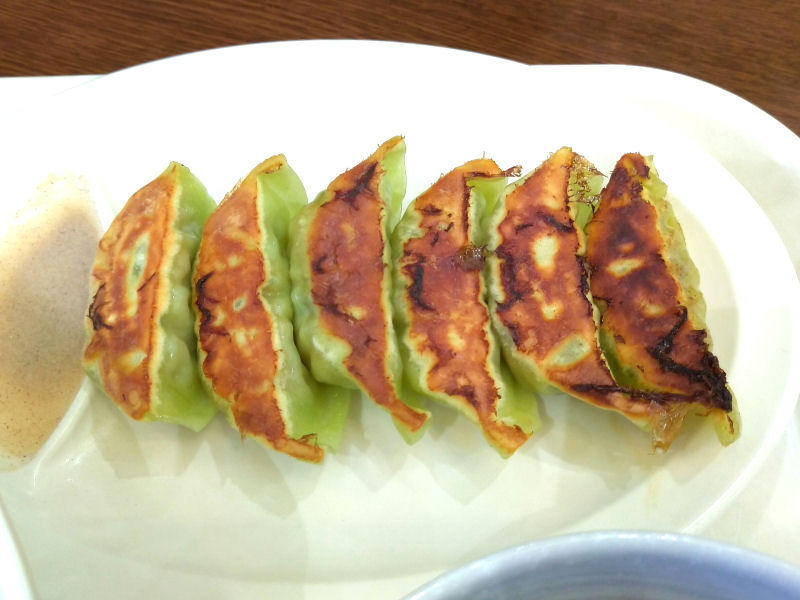 ベジタブル餃子、見た目からして緑色ですが、シャキシャキ野菜が入っていて、なんとなく気持ちヘルシーな気分にはなれます。