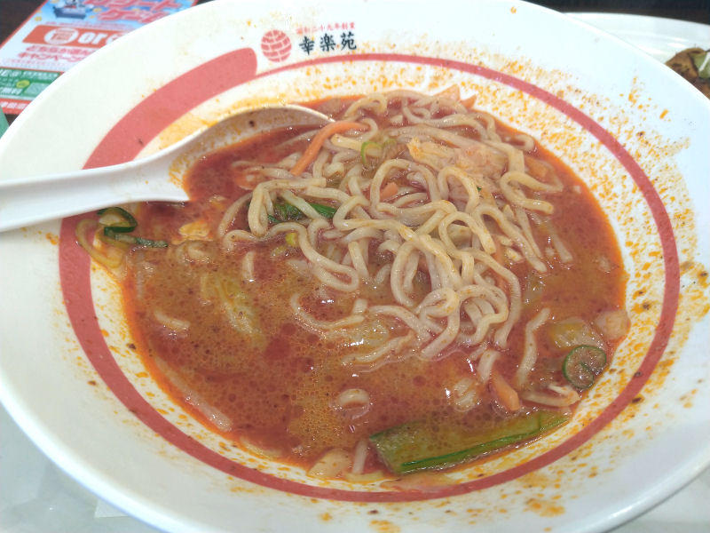 Top日常グルメ > 幸楽苑 期間限定 野菜担々麺が痺れる辛さなのに野菜もとれておいしい