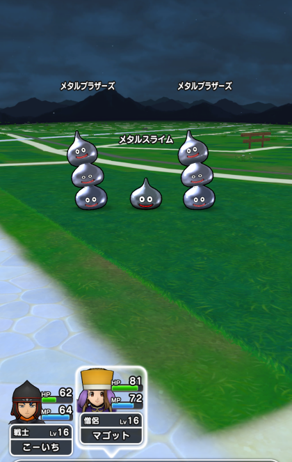 メタルスライムや、メタルブラザーズを倒してガンガンレベル上げ出来たのは大きいです。しかし、メタルブラザーズは、HP削られまくった上に逃げるからたちが悪いですね。